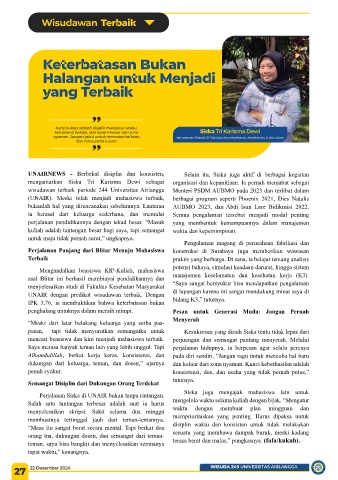 dukungan dari keluarga, teman, dan dosen,” ujarnya dan keluar dari zona nyaman. Kunci keberhasilan adalah