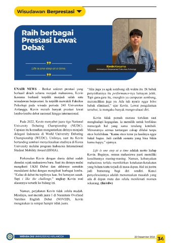 Airlangga. Kevin meraih banyak prestasi lewat tersebut, ia mengaku banyak mengevaluasi diri.